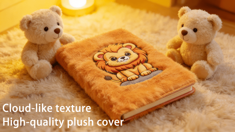 The plush material is ultra-soft with a silky-smooth texture, offering a plushy feel that never feels rough or prickly when touched. We provide comprehensive customization services: Available in standard sizes (A4, A5, A6) or custom sizes as needed. Our plush materials include faux rabbit fur, velvet, and other options, with colors matching Pantone color charts to achieve brand-specific tones or creative color clashes. Custom logos, embroidery patterns, and binding styles (e.g., loose-leaf or hardcover) are also available. Inner pages can be designed with horizontal lines, grids, blank pages, or even custom printed content.
