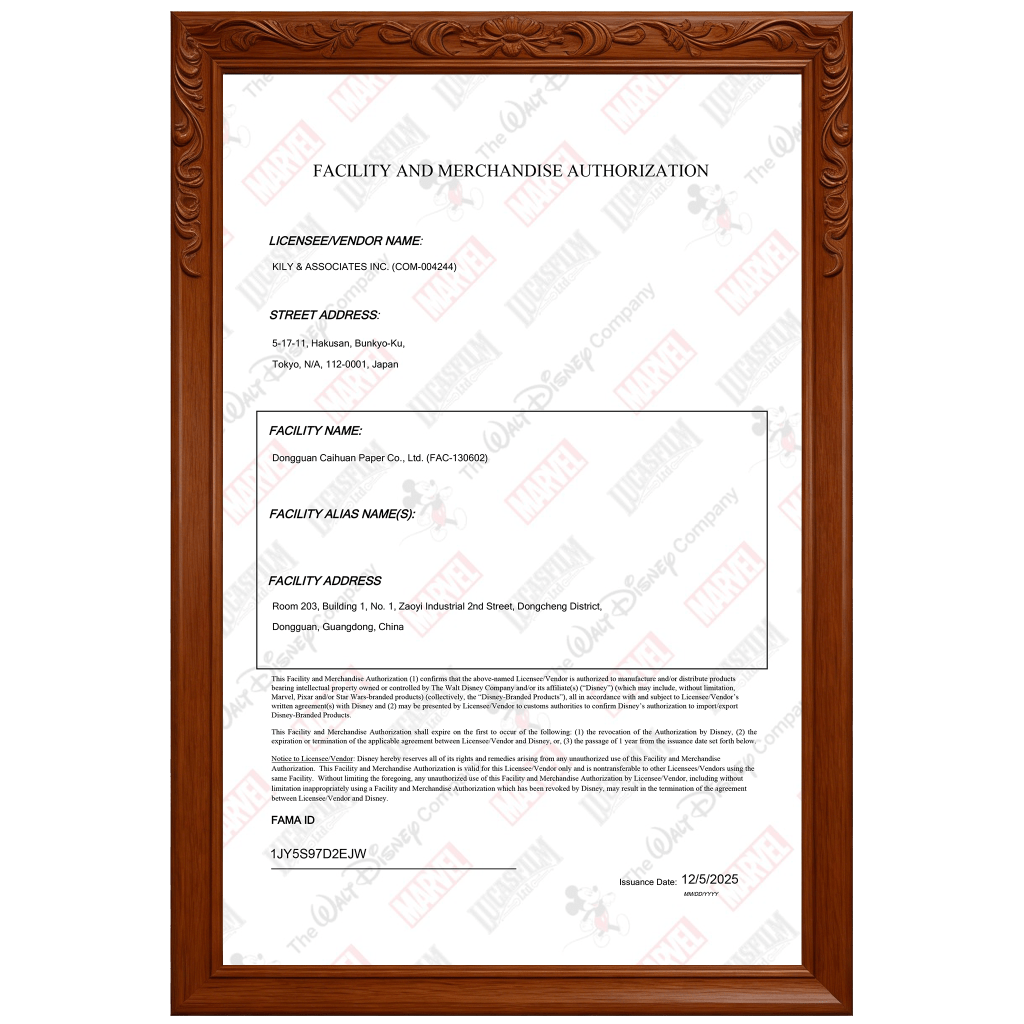 我们工厂已获得迪士尼认证、FSC认证、ACM认证,并拥有多项专利和版权。